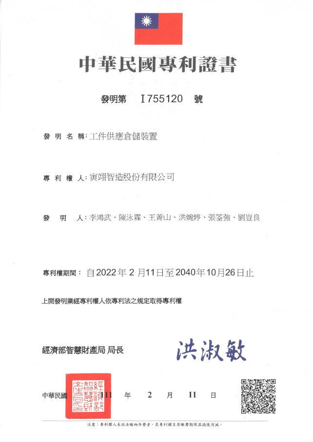 工件供應倉儲裝置-台灣發明-I755120